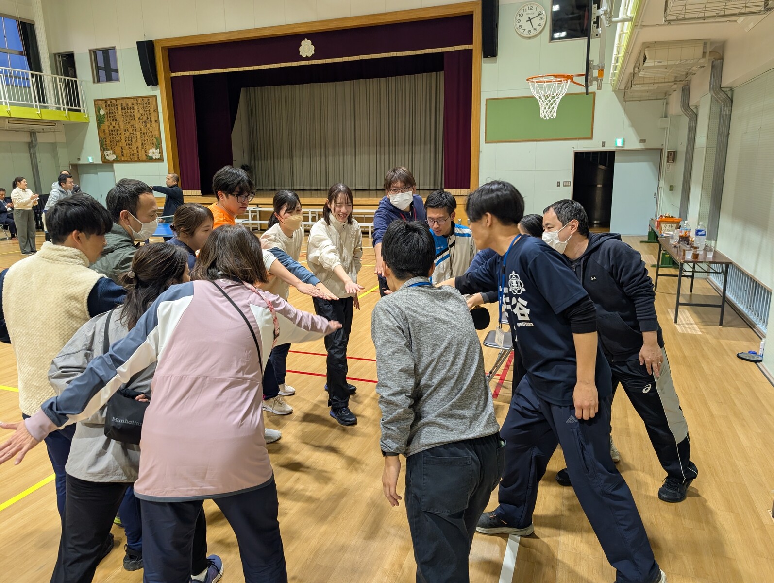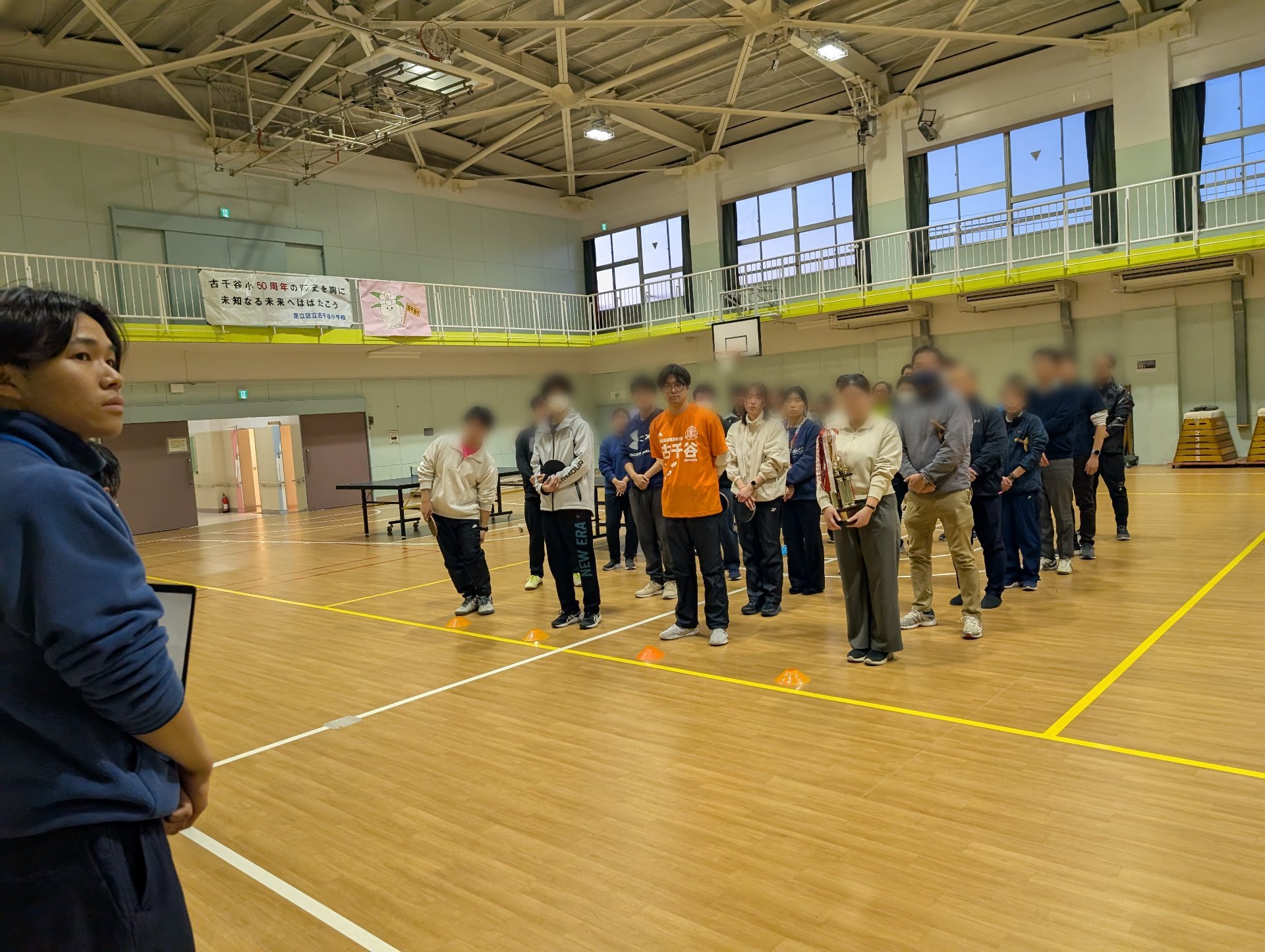 本校、舎人小学校、舎人第一小学校、足立入谷小学校の教職員・関係者が集まり、心地よい汗を流しながら交流を深めました。