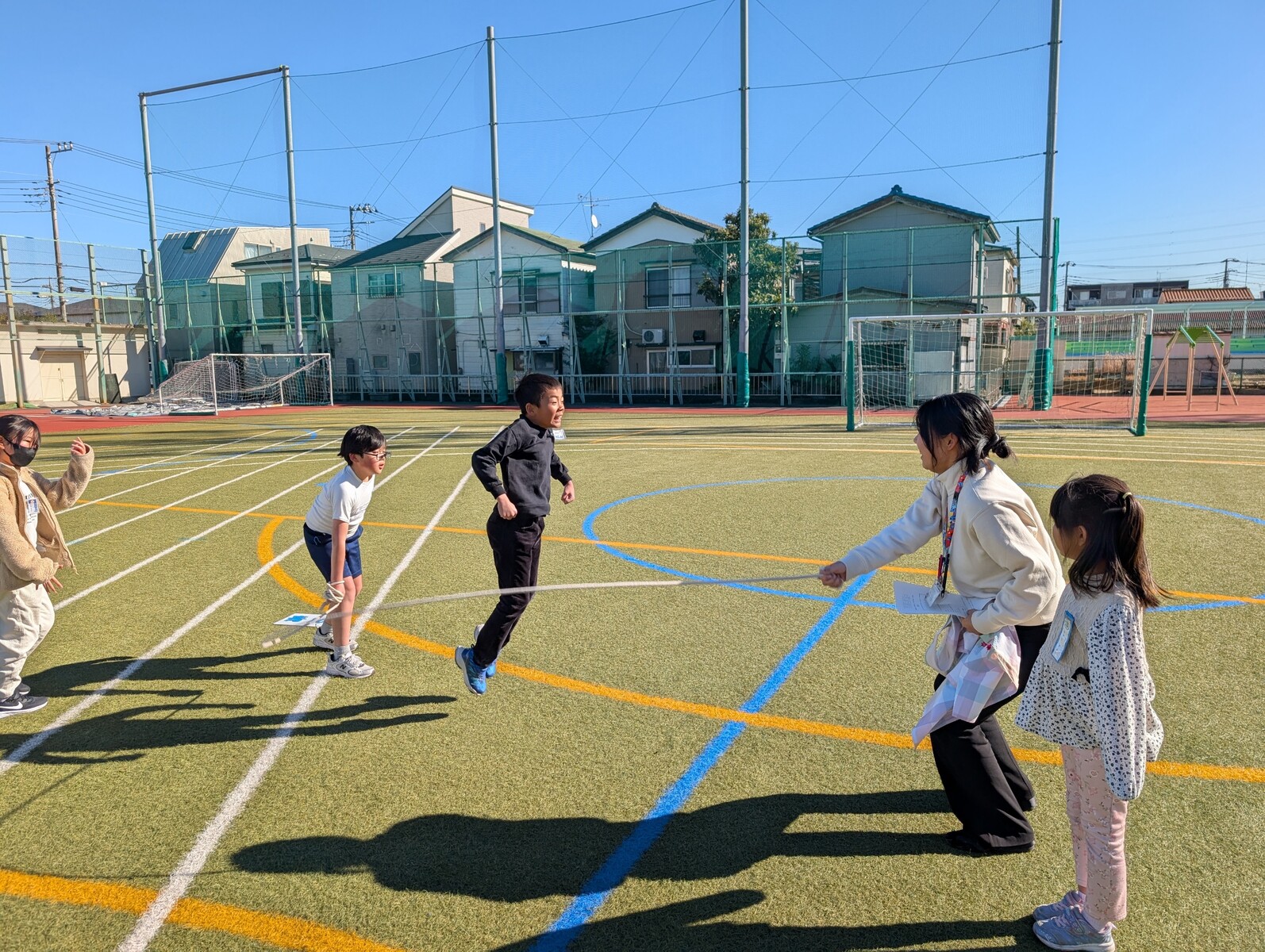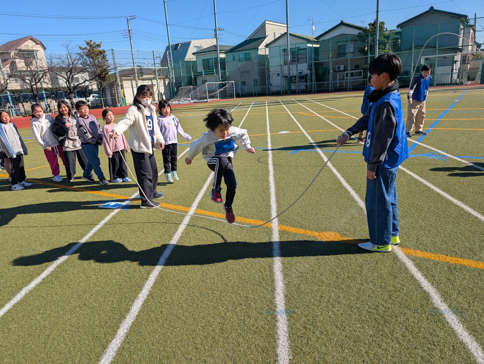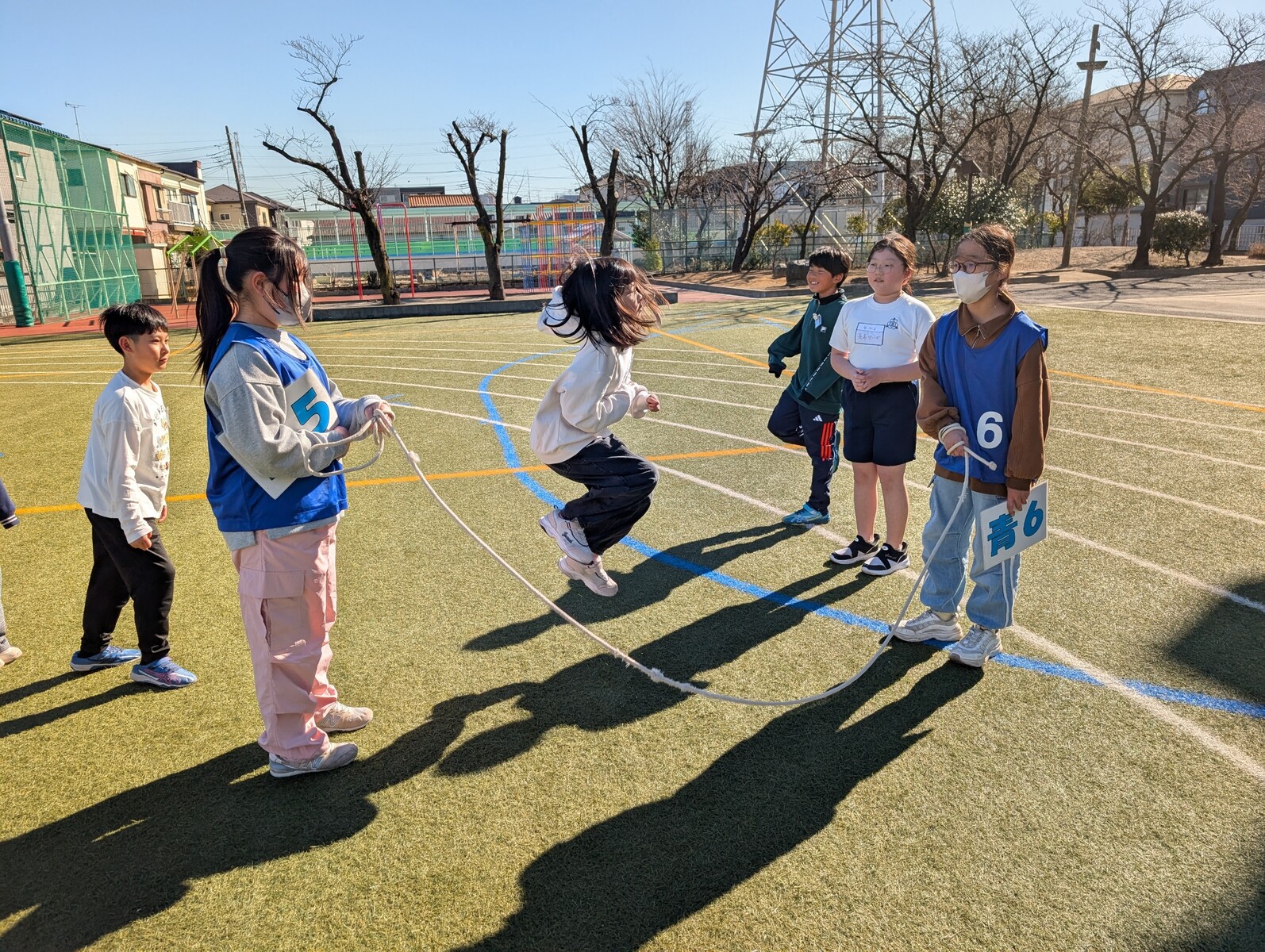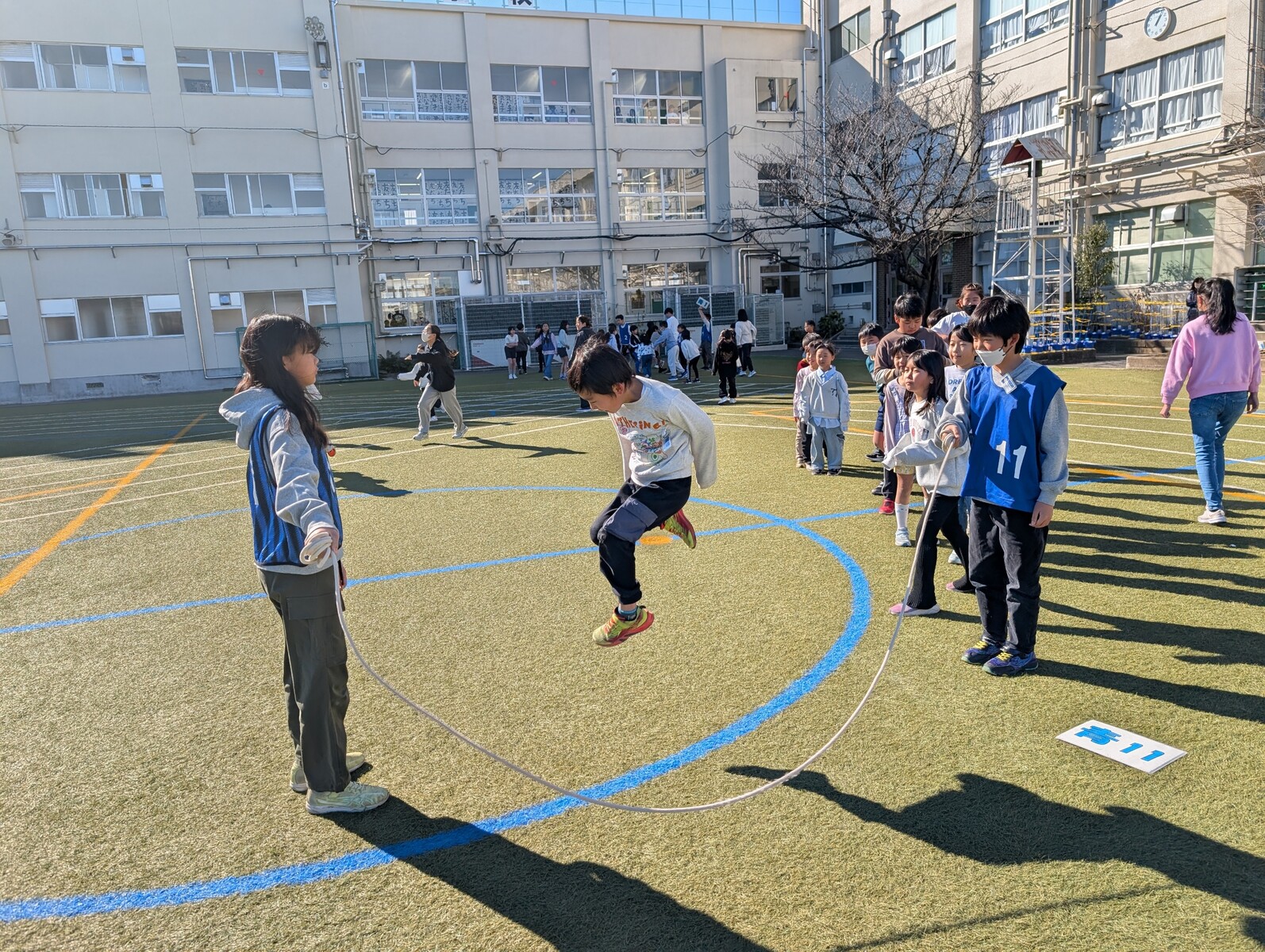 ここ数日の寒さとは打って変わって、穏やかな日差しに包まれた「長縄日和」の一日でした。グループは変わっても、6年生の安定したリーダーシップは健在です。その頼もしい姿に応えるように、低学年の子供たちもキラキラとした笑顔で参加していました。