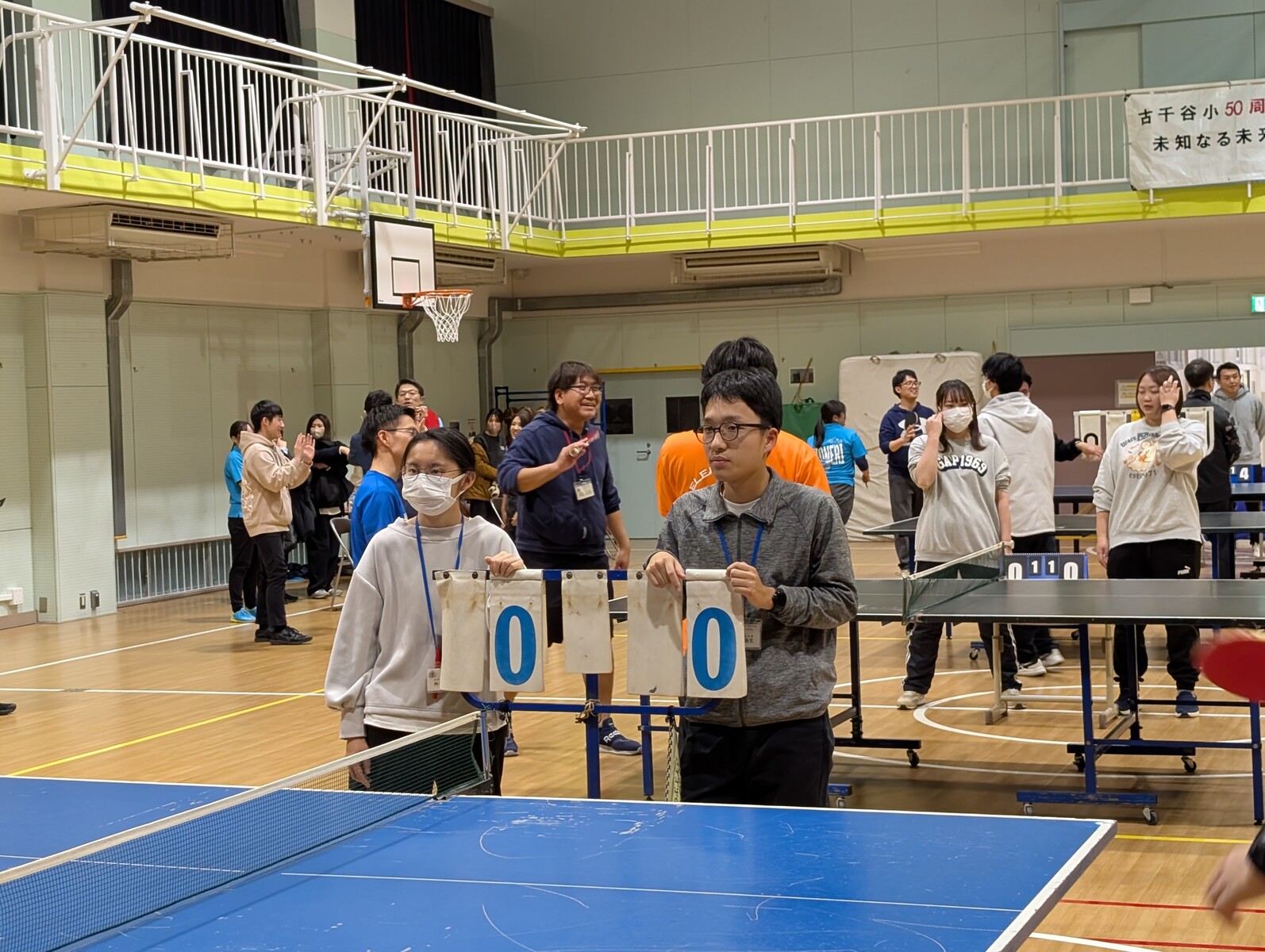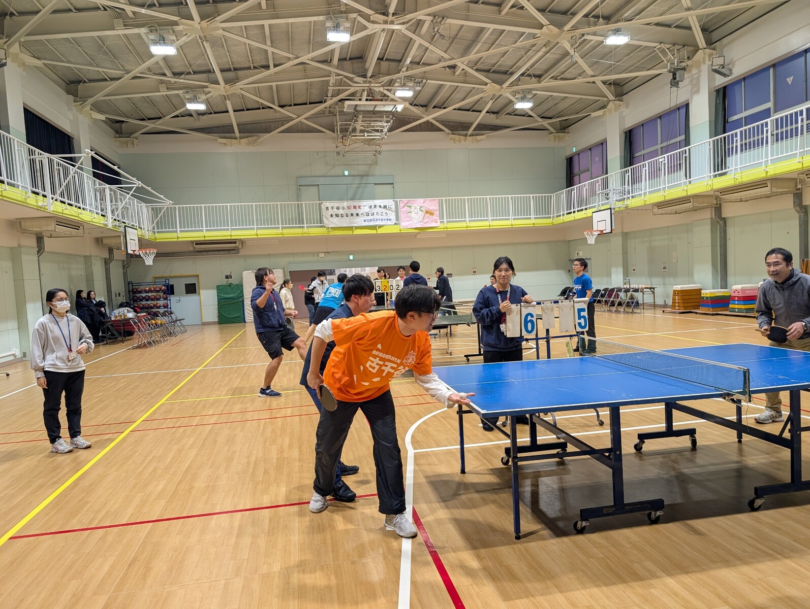 夕方より古千谷小学校にて、近隣4校による「親睦卓球大会」が開催されました。
